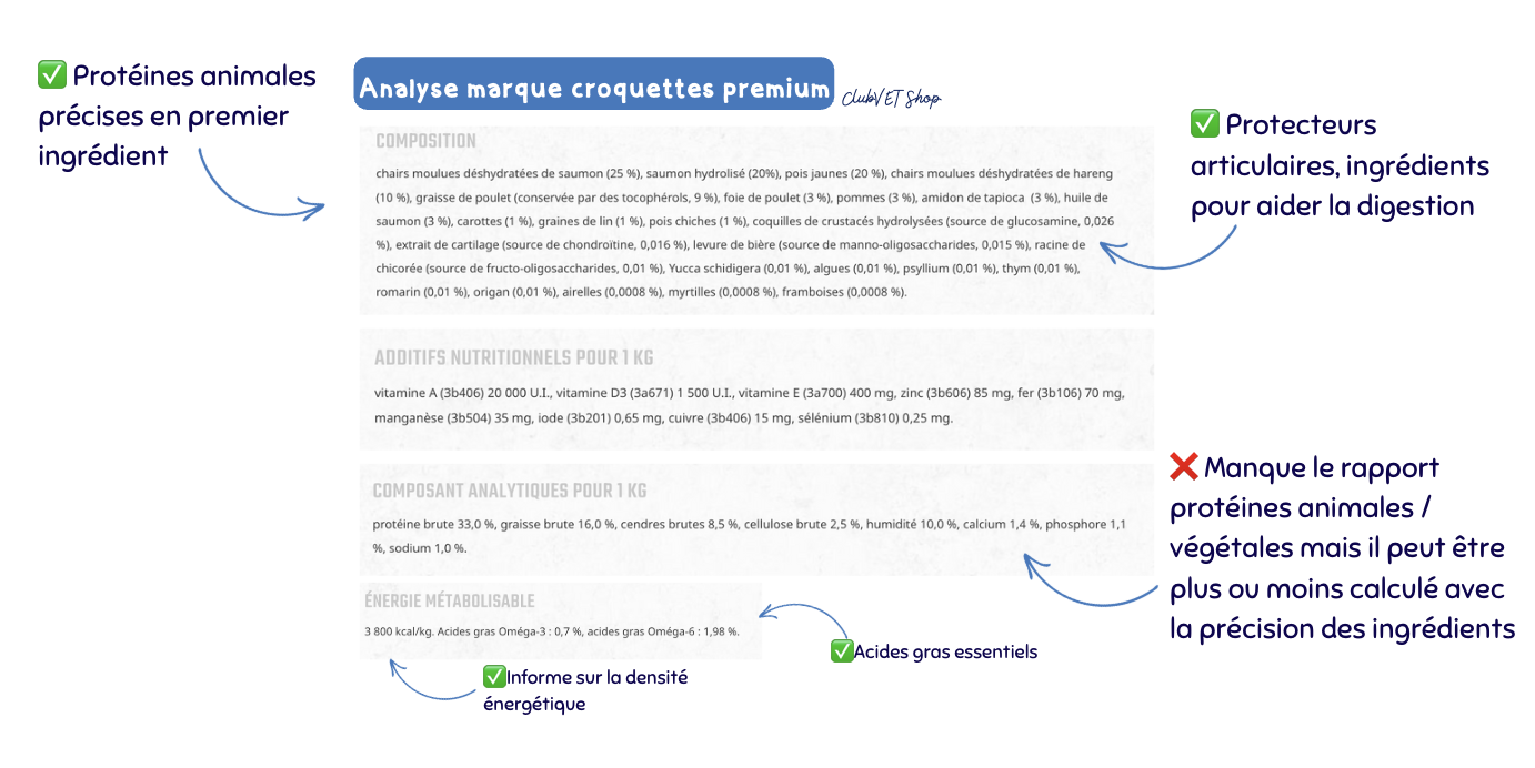 Mais face à l’abondance d’offres sur le marché, il est parfois difficile de s’y retrouver : croquettes de supermarché, croquettes premium, ou croquettes vétérinaires, laquelle choisir et y'a t'il réellement une différence en dehors du prix ?